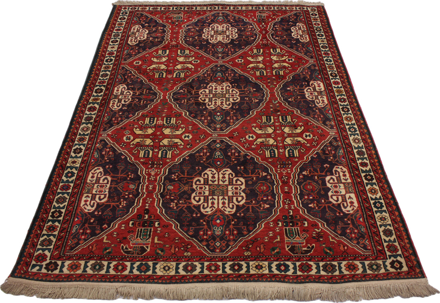 Τα χρώματα του χαλιού διαφέρουν (ανοικτό ή σκούρο) ανάλογα την φορά του πέλους και την γωνία την οποία κοιτάζεται το χαλί.