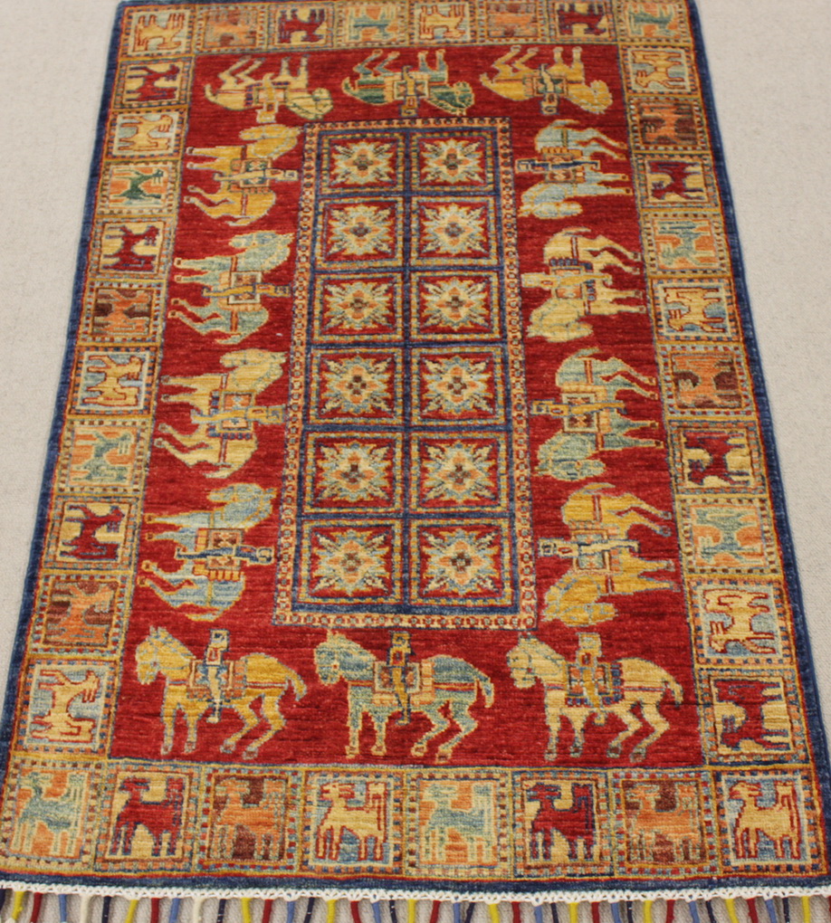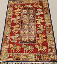 Τα χρώματα του χαλιού διαφέρουν (ανοικτό ή σκούρο) ανάλογα την φορά του πέλους και την γωνία την οποία κοιτάζεται το χαλί.