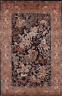 Τα χρώματα του χαλιού διαφέρουν (ανοικτό ή σκούρο) ανάλογα την φορά του πέλους και την γωνία την οποία κοιτάζεται το χαλί.